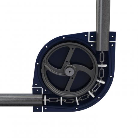 De ketting die door de buizen getrokken wordt, is uiterst sterk. Roxell maakt ze uit een speciale staallegering. Een algemene eigenschap van een kettingsysteem is dat de keten – na verloop van tijd – uitrekt. Het aandrijfsysteem van Discaflex kan die extra lengte – tot 35 cm – perfect compenseren, zonder dat u schakels moet verwijderen. En dit alles zonder verlies van performantie.